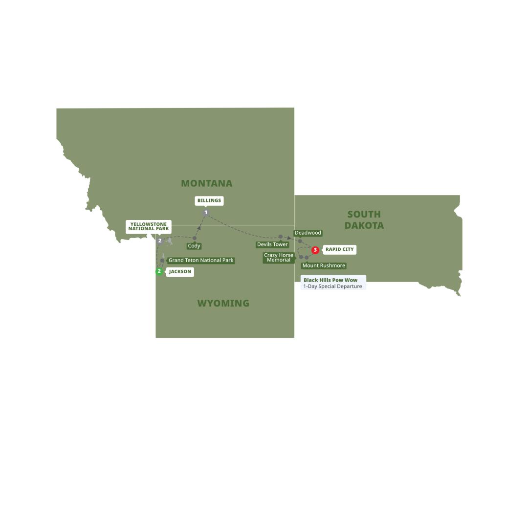 Head through the windswept prairies of the American frontier starting with a visit to Little Bighorn Battlefield National Monument before continuing into the Black Hills of South Dakota. You'll admire the looming fortress of Devils Tower, a geological monolith that seems to rise upright out of the prairie and learn why it's considered sacred to local Native American tribes. Afterwards journey to Rapid City, where you'll have your overnight stay.
