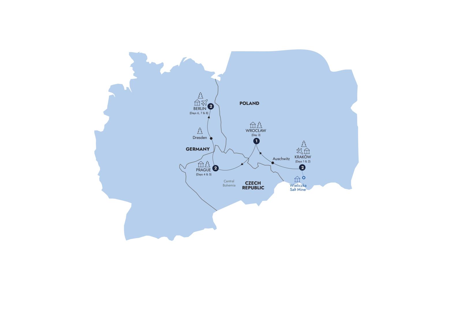 Your journey draws to a close after breakfast. Departure transfers arrive at Berlin airport.