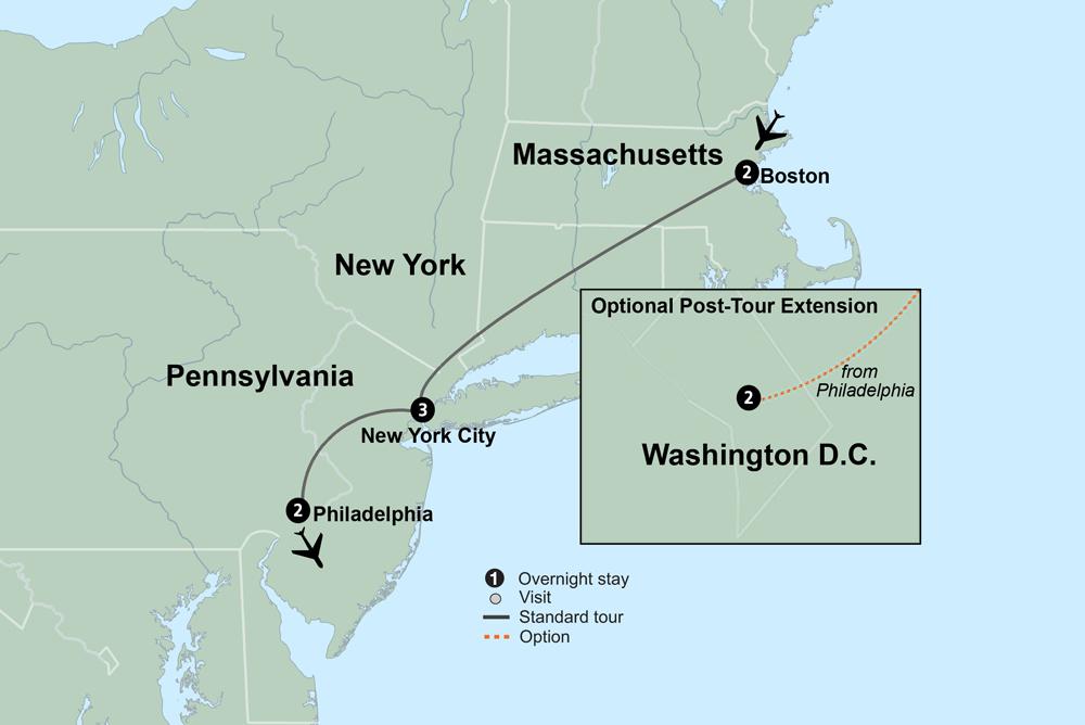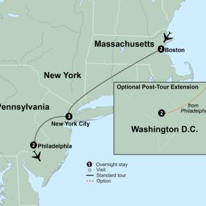 Celebrate the nation's origins with a journey that begins in the "Cradle of the American Revolution" and continues through the historic centers of New York and Philadelphia, exploring stories of the country, old and new. Arrive in Boston, a city bursting with character and history. As arrival times will be scattered through the afternoon and evening, there are no scheduled activities today.
