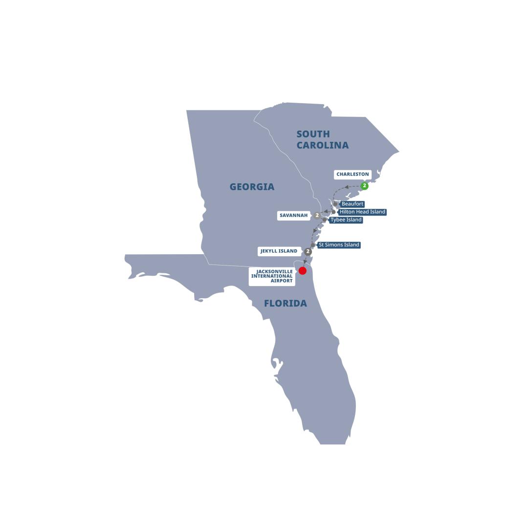 Enjoy one last leisurely morning on Jekyll Island before concluding your American Southeast tour. Then say farewell to your fellow travelers as you depart for Jacksonville, Florida International Airport arriving at approximately 10:00 AM. Please be aware when booking your flights. You may also choose to extend your stay in Jacksonville, FL.
