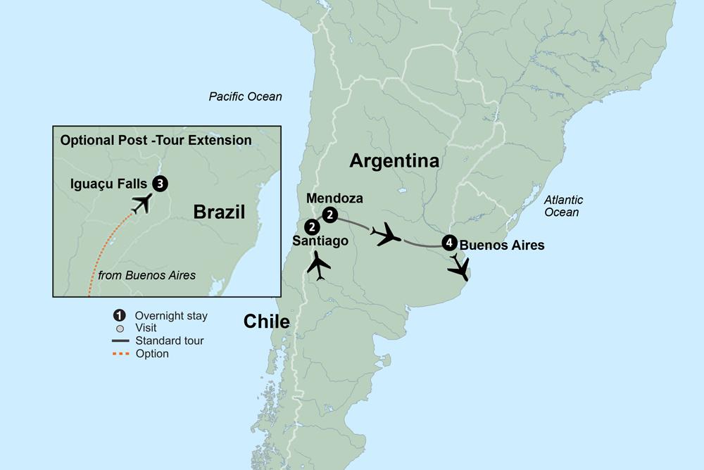 An early morning flight brings you to the desert region of Mendoza, known for its vineyards and Malbec wine, and the stunning views of the Andes Mountains. Upon arriving enjoy a brief orientation tour of downtown Mendoza and free time to have lunch on your own. This afternoon, travel outside the city to visit a boutique, family winery. Sample wines selected to show the richness of the terroirs and come to appreciate the unique qualities of the Lujan de Cuyo wine-producing sub-region with its dry, almost desert-like climate and irrigation from the Mendoza River's pure Andean meltwater. Later, settle into your hotel in the city of Mendoza for an evening at leisure.*