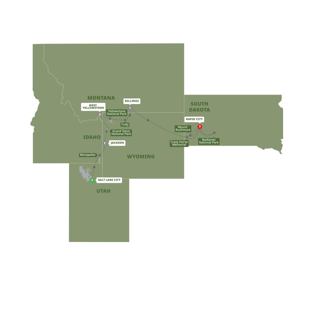 Continue your discovery of the Wild West heading through the "Energy Capital of the US," Gillette, WY. Then, travel to South Dakota to spend the afternoon getting familiar with a famed Lakota warrior at Crazy Horse Memorial. You'll gaze in awe of this colossal carved tribute to Crazy Horse, which you'll learn is the largest mountain carving in the world.